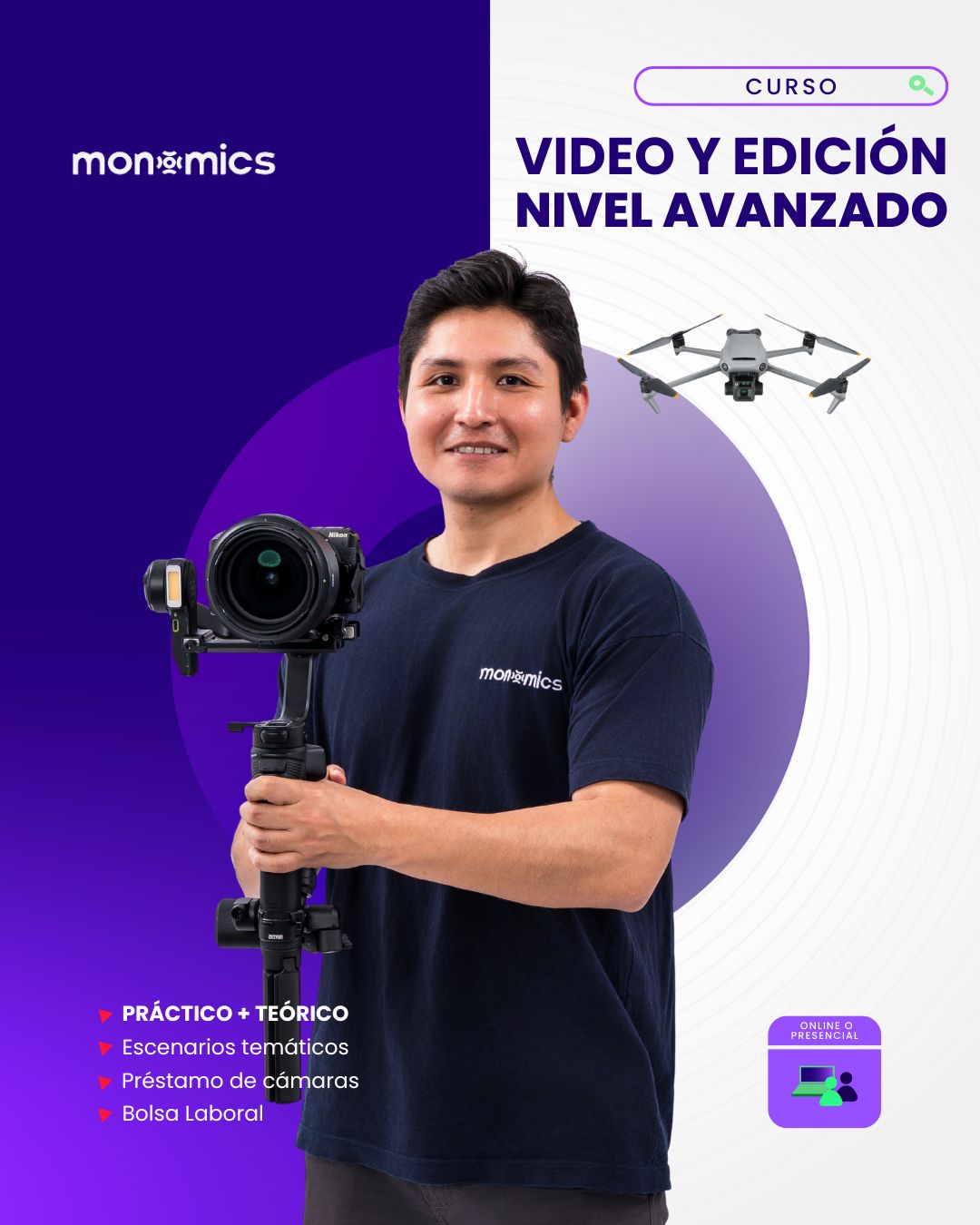 Presencial: Primer día de teoría y práctica y el segundo día de edición. Suelen durar un aproximado de 8 horas/día.